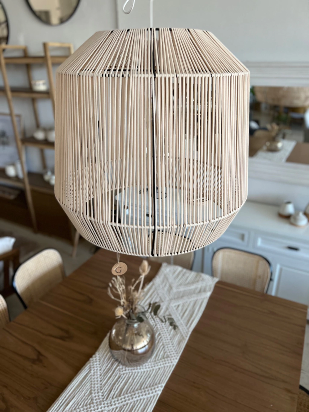 Lampara de hilo natural, estructura de hierro.