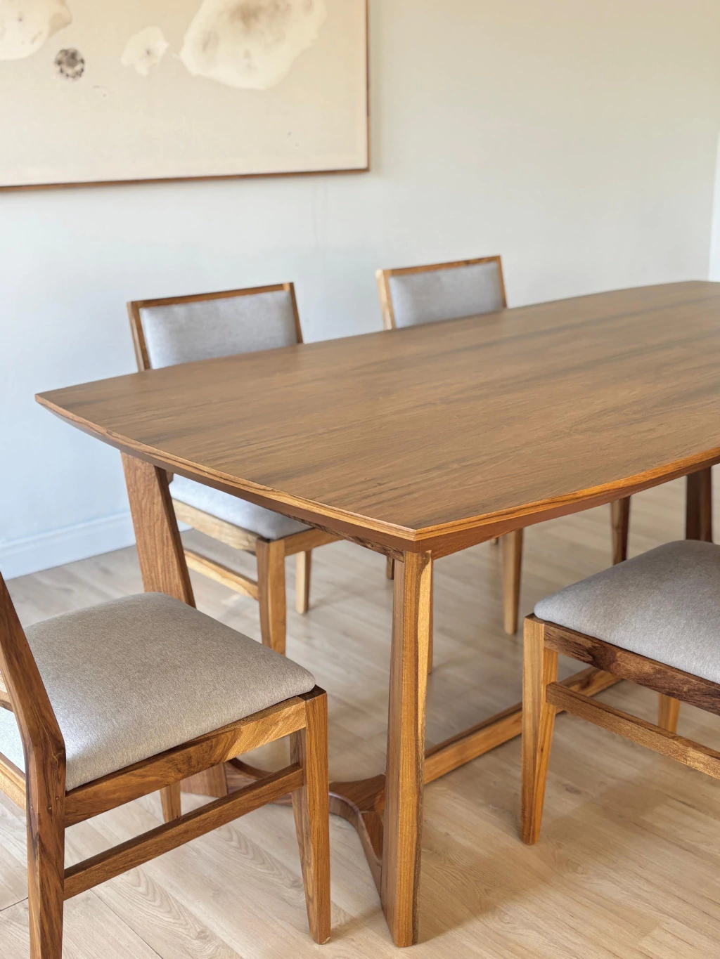 Fabricada en madera Petiribi maciza tapa enchapada. Laca poliuretanica súper resistente y suave al tacto