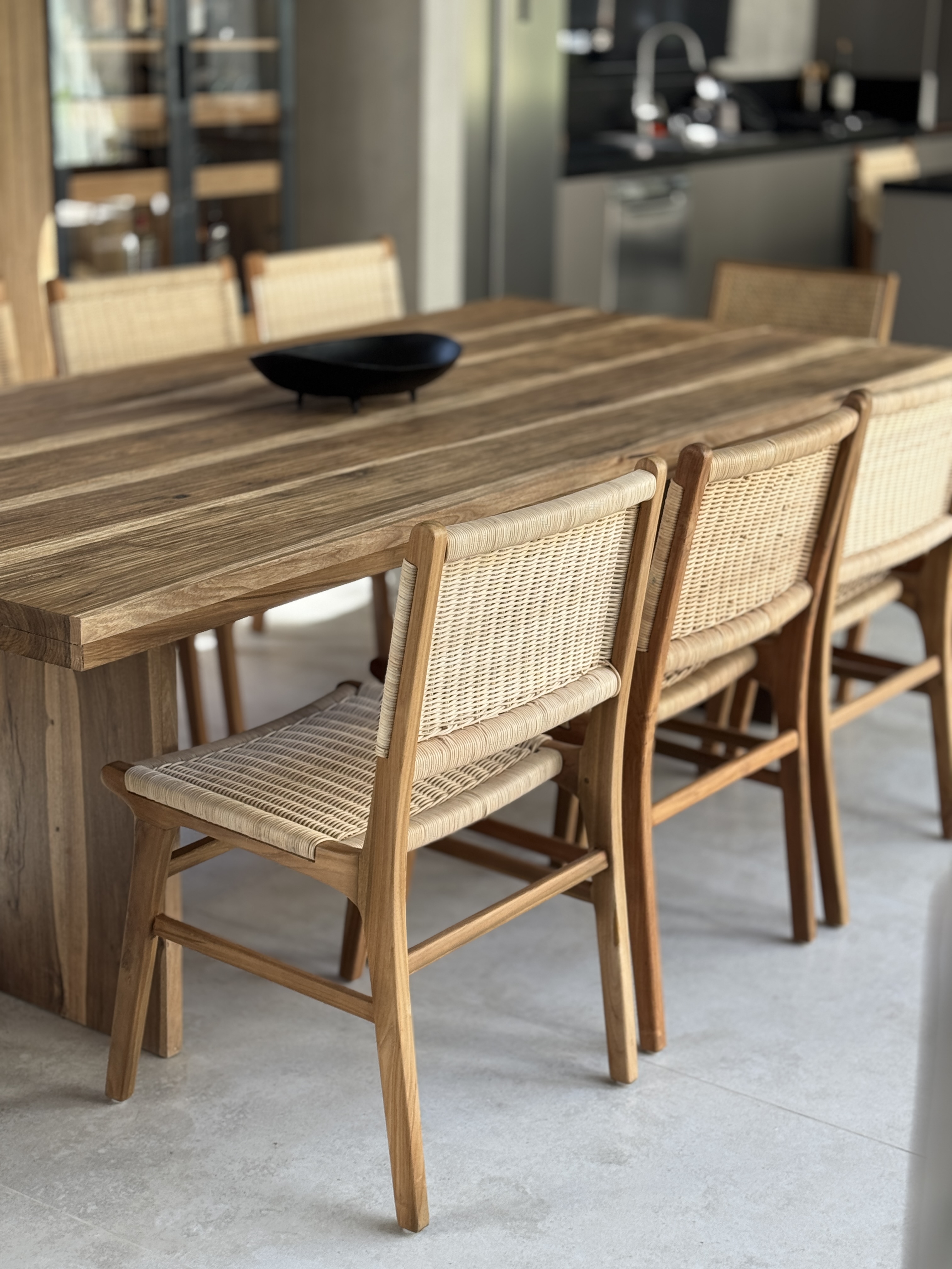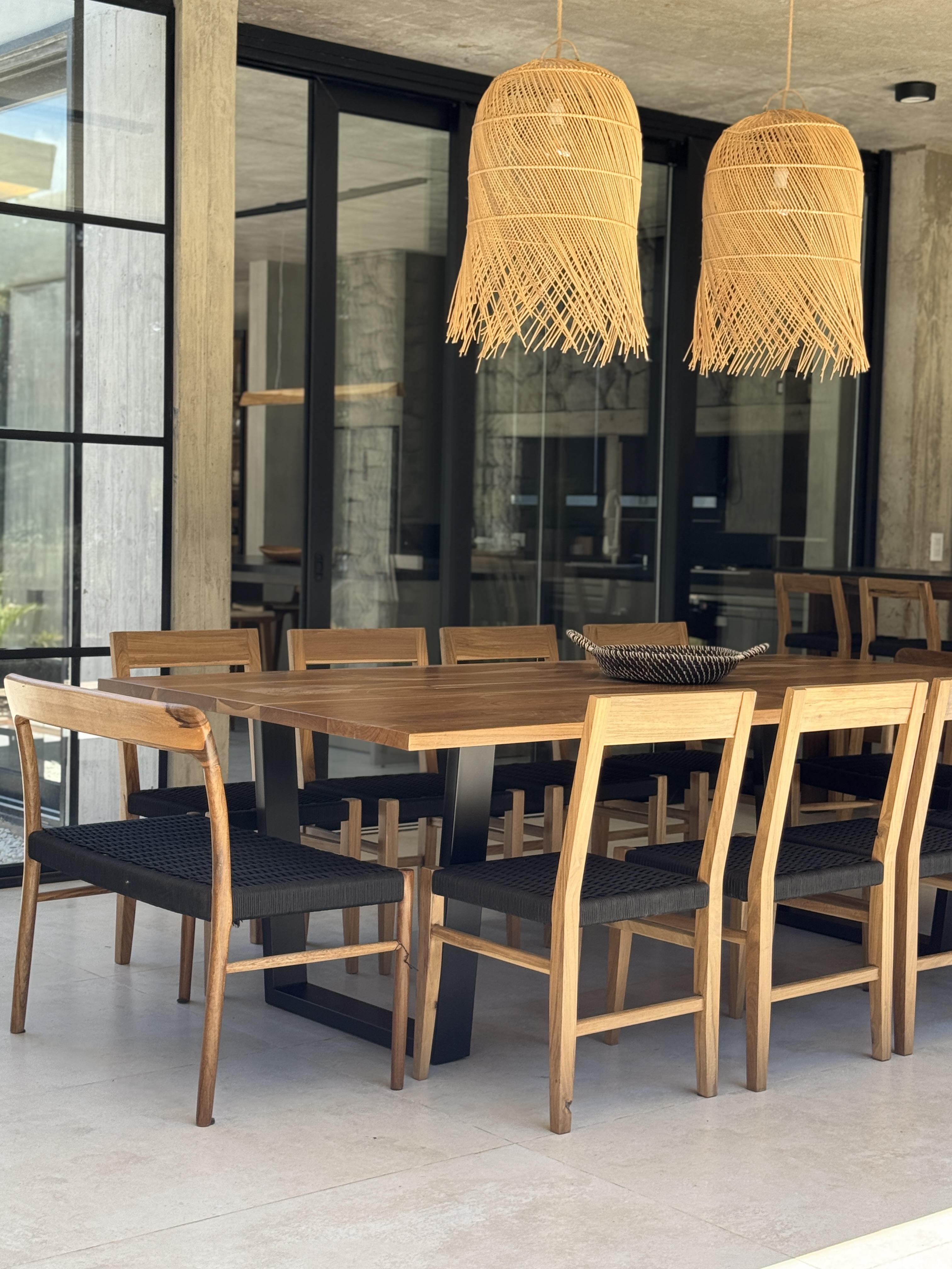 Cada decisión fue pensada en función del uso: Un living amplio y flexible para reuniones largas. Una mesa protagonista para comidas compartidas. Espacios exteriores integrados al interior para aprovechar el día completo.