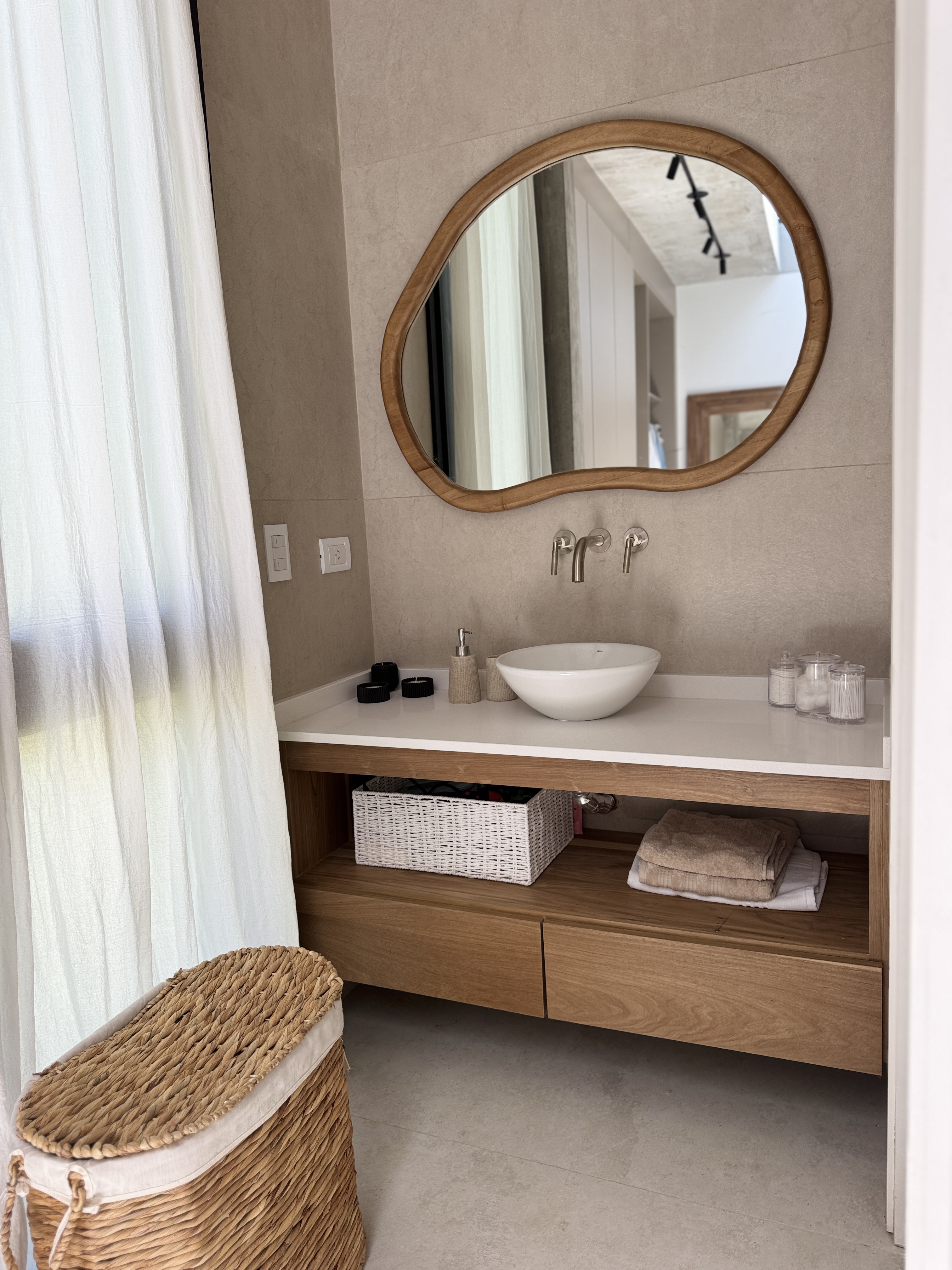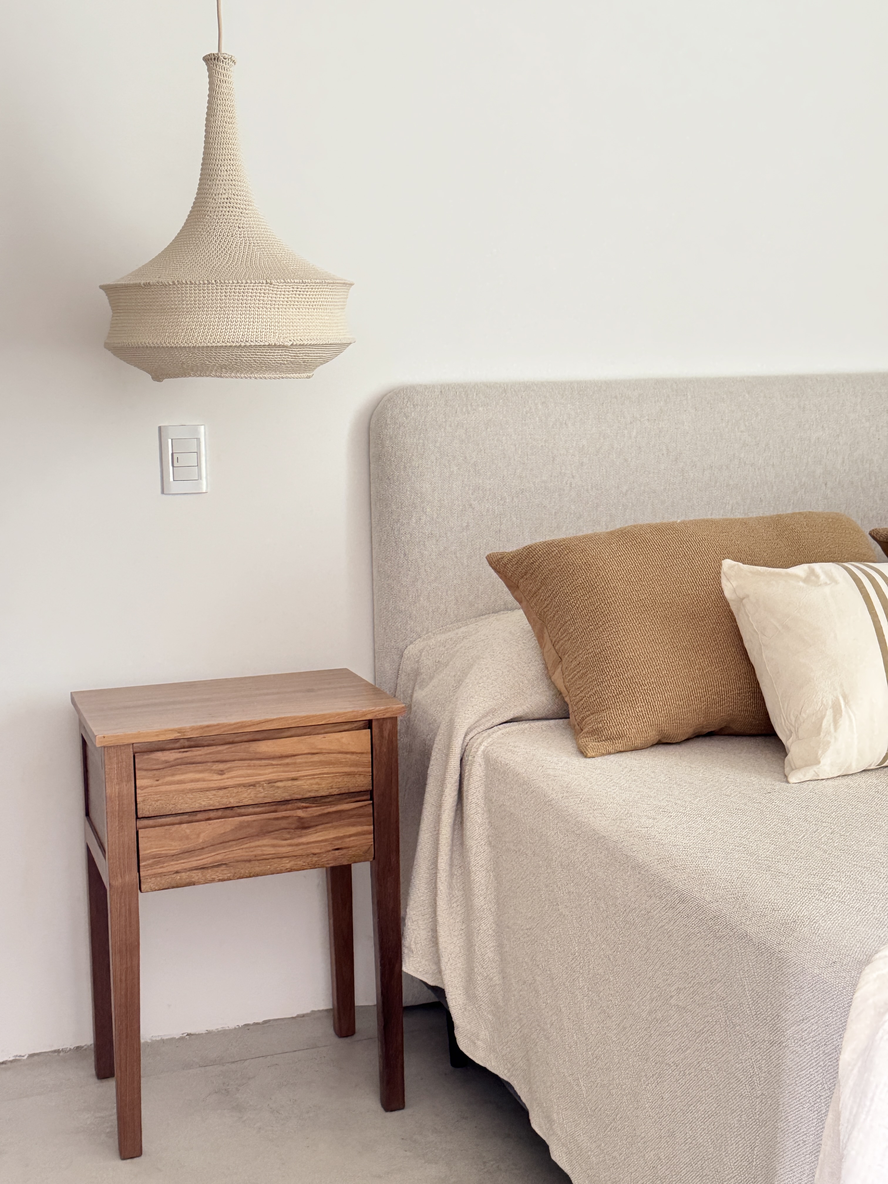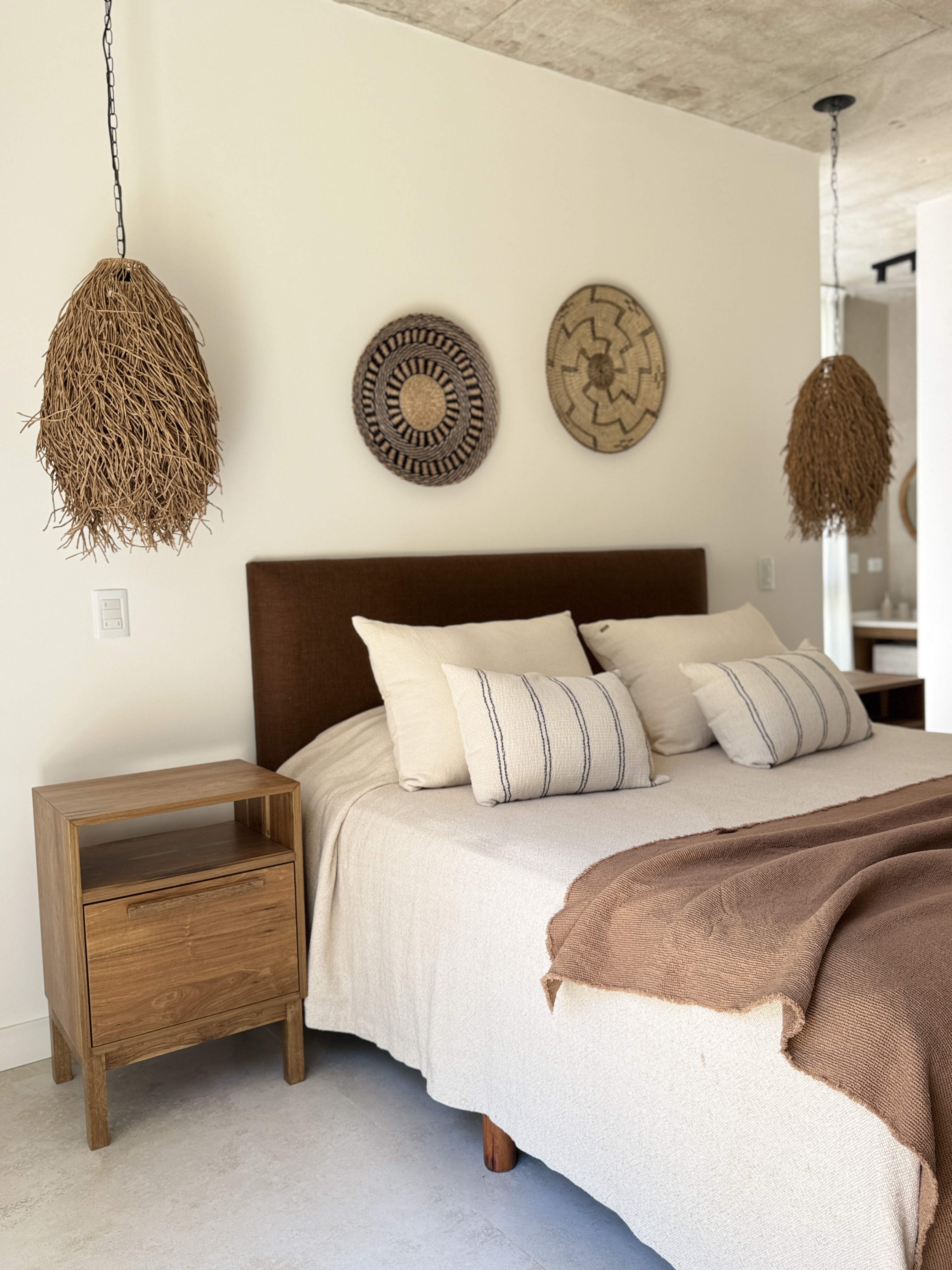 Elegimos materiales nobles y resistentes, tonos claros que amplifican la luz natural y texturas que aportan calidez sin sobrecargar. Madera, fibras naturales, textiles livianos y una paleta neutra que transmite calma.