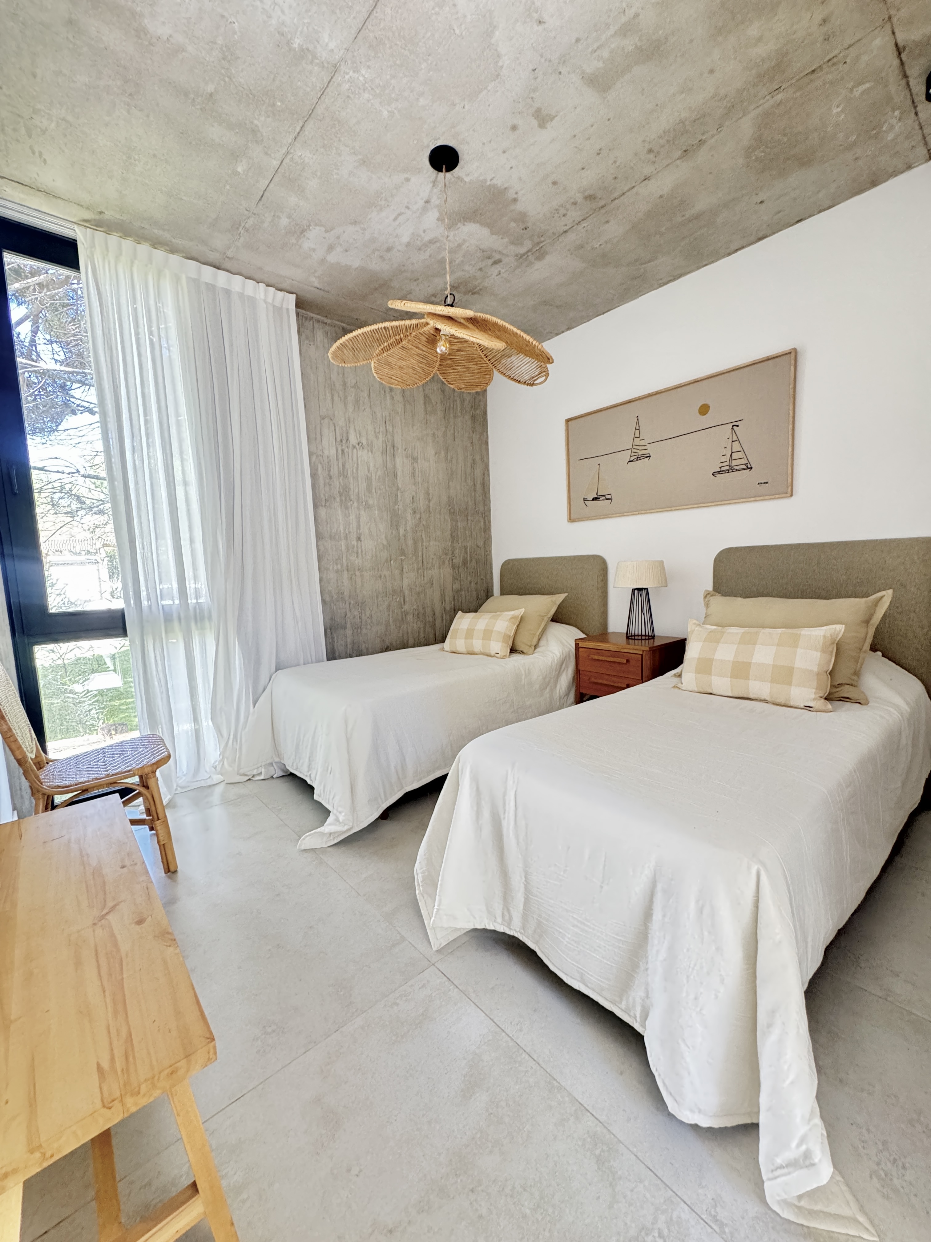 La idea fue trabajar un estilo playero, luminoso y relajado, pero siempre funcional. No queríamos una casa solo estética. Queríamos una casa real, cómoda y práctica, preparada para ser vivida intensamente.